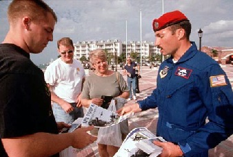 Staff Sgt. Anthony Canterberry, also from Pope, hands out special tactics and STARS team literature in Key West