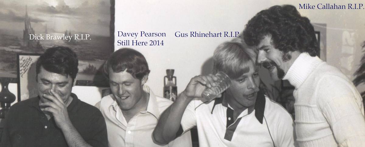 Above 1978, Davey's Separation Party; Dick Brawley, Davey Pearson, Gus Rhinehart, and Mike Callahan