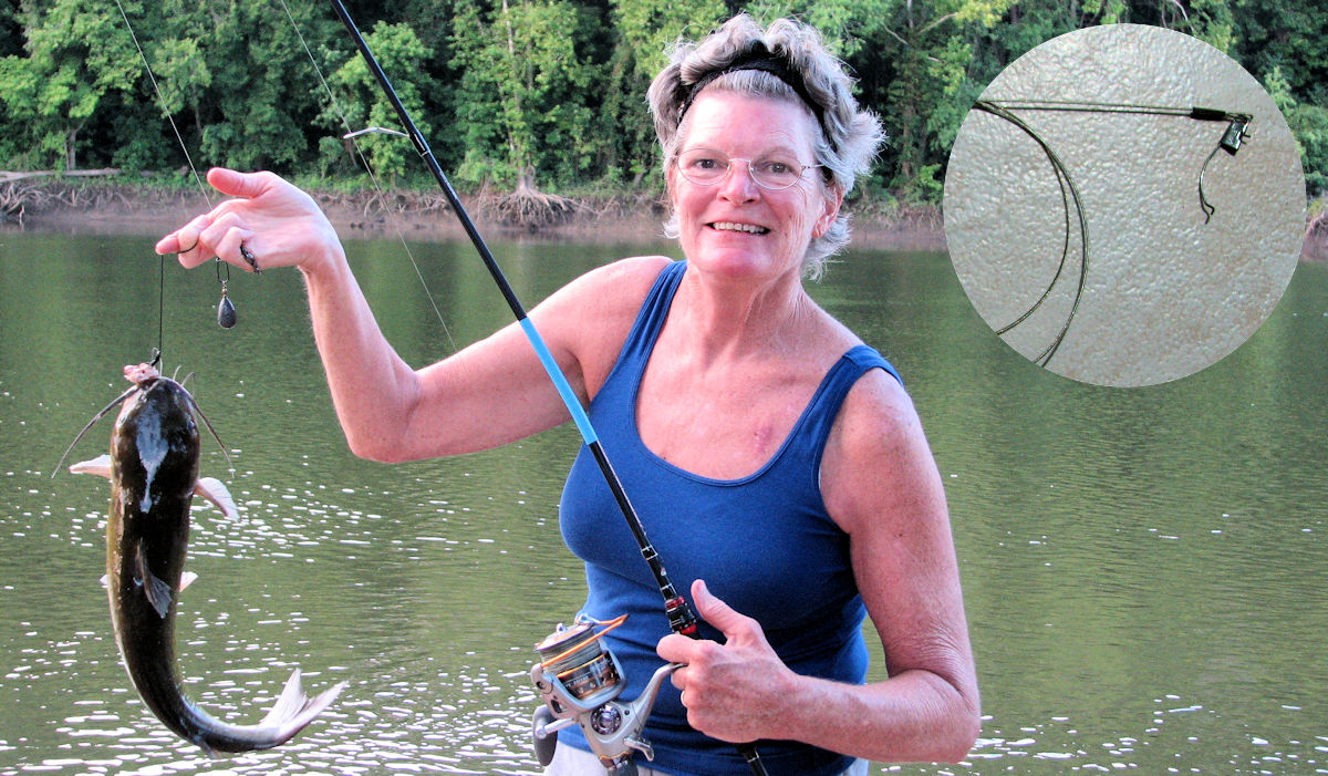 This is what Osage River Cat's are all about and Jill hooks one too.  However, the biggest fish got away, as shown by her straightened swivel below.