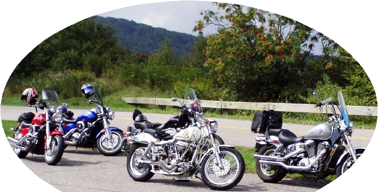 The next day we met up with Dave's sister Nancy and her husband Terry. They also just happen to be next door neighbors. Chief James and I, along with our bed warmers were staying at Dave and Mary's Bed and Breakfast. We came here for FUN and last night was just the start! We saddled up the bikes and headed for the mountains. Did I tell you Razcals Restaurant and Lounge is in Asheville, NC and the Smokey Mountains? We hit the Blue Ridge Parkway and ran into many other bikers also enjoying the mountains.