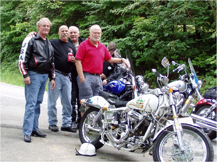 The next day we met up with Dave's sister Nancy and her husband Terry. They also just happen to be next door neighbors. Chief James and I, along with our bed warmers were staying at Dave and Mary's Bed and Breakfast. We came here for FUN and last night was just the start! We saddled up the bikes and headed for the mountains. Did I tell you Razcals Restaurant and Lounge is in Asheville, NC and the Smokey Mountains? We hit the Blue Ridge Parkway and ran into many other bikers also enjoying the mountains.