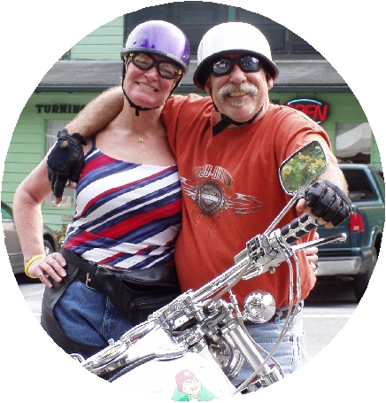That night we spent a wild evening at Dave and Mary's Bed & Breakfast and chowed down on steak,scallops, and tators. Dave and Mary have a few dogs and the little beast (Buddha) wanted a piece of Vinnie & Minnie. Of course we were so lucky, Minnie had just gone into heat, go figure. We had a house full and they never complained? The next morning we saddled up again. Jim and Margo were heading home on their bike's and we were going for one more day of riding in the mountains..........