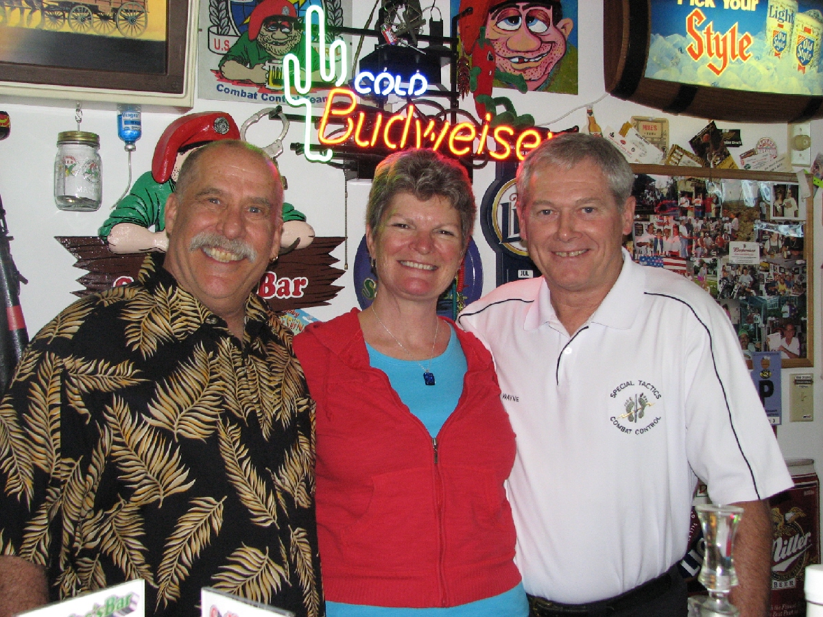 As Richard K. expressed; " The CCT Sprouse's came, saw, and conquered SgtMac'sBar! Son, Joe wonders; "Made me lose 80 bucks at a free bar????" The Sprouse's left here with the new CCT Book, Eye of the Storm, and some SgtMac'sBar Coins.... Joe was the only one with money.